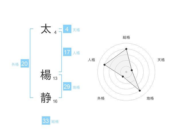 太 楊静さんの総格は33画の4点!