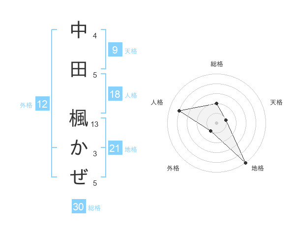 中田 楓かぜさんを姓名の画数から五運を鑑定