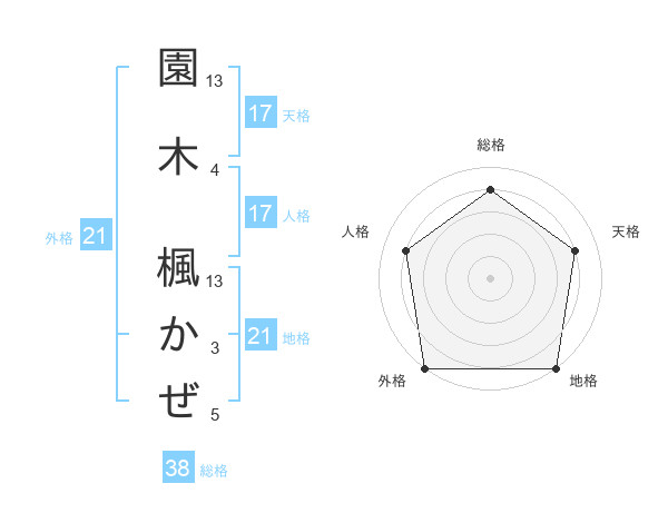 園木 楓かぜさんを姓名の画数から五運を鑑定