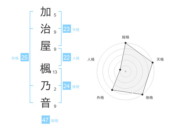 加治屋 楓乃音さんを姓名の画数から五運を鑑定