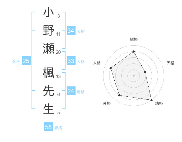 小野瀬 楓先生さんを姓名の画数から五運を鑑定