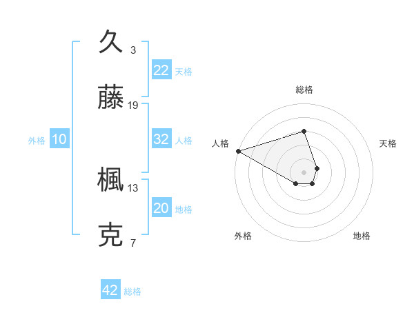久藤 楓克さんを姓名の画数から五運を鑑定