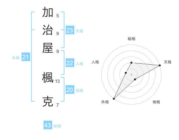加治屋 楓克さんを姓名の画数から五運を鑑定