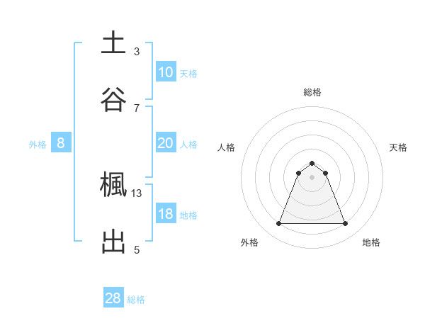 土谷 楓出さんの総格は28画の1点!
