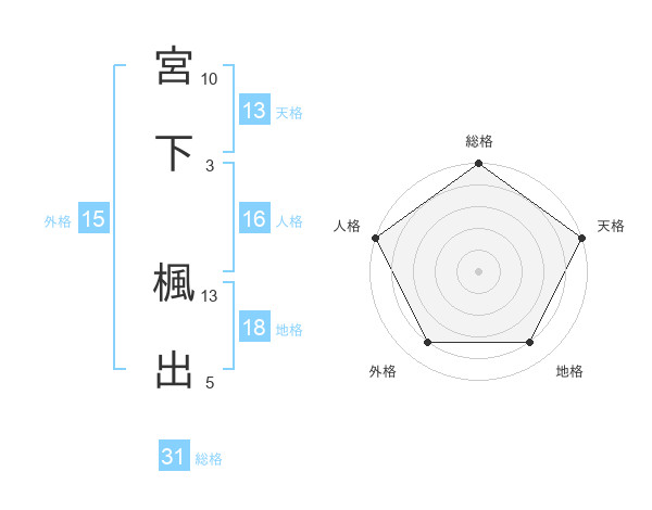 宮下 楓出さんを姓名の画数から五運を鑑定