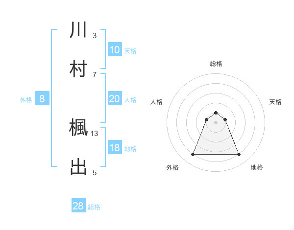 川村 楓出さんの総格は28画の1点!