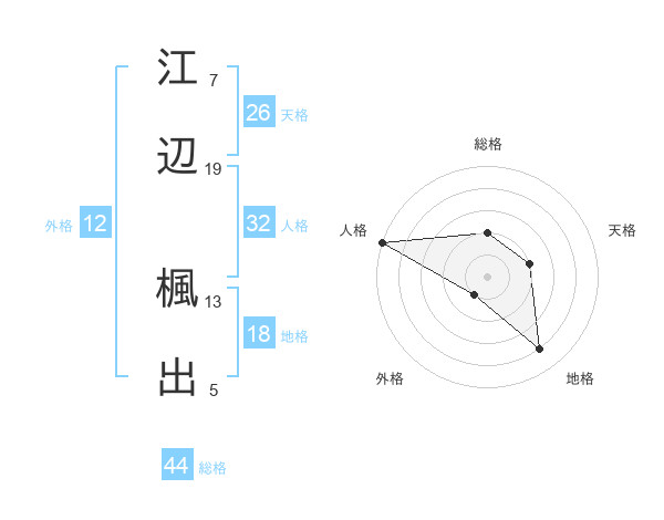 江辺 楓出さんの総格は44画の2点!