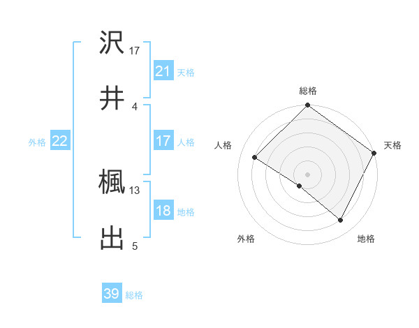 沢井 楓出さんの総格は39画の5点!