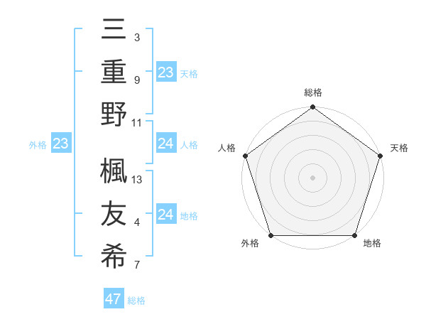 三重野 楓友希さんを姓名の画数から五運を鑑定