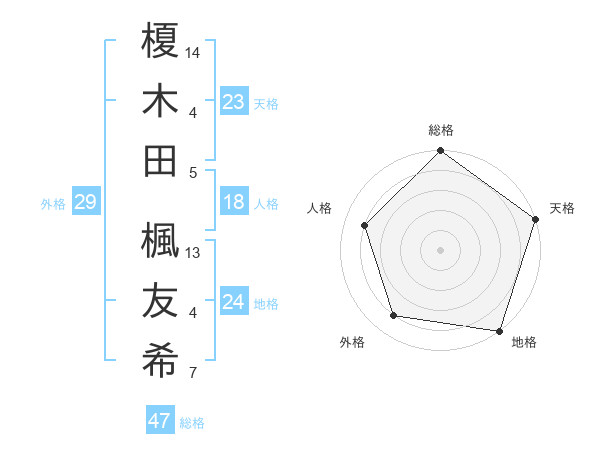 榎木田 楓友希さんの総格は47画の5点!