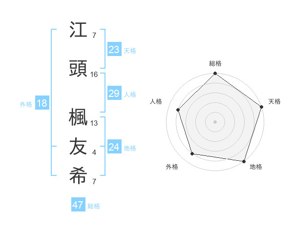 江頭 楓友希さんの総格は47画の5点!