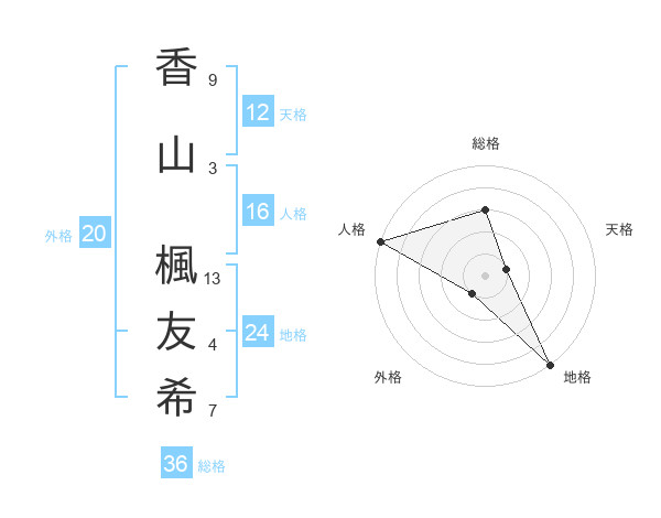 香山 楓友希さんを姓名の画数から五運を鑑定