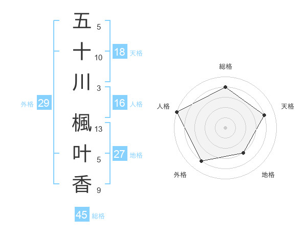 五十川 楓叶香さんの総格は45画の4点!