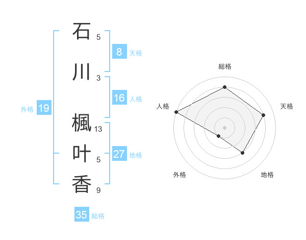 石川 楓叶香さんを姓名の画数から五運を鑑定