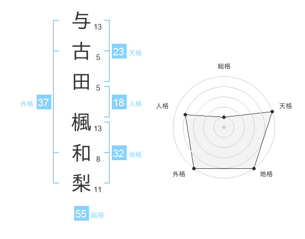 与古田 楓和梨さんを姓名の画数から五運を鑑定