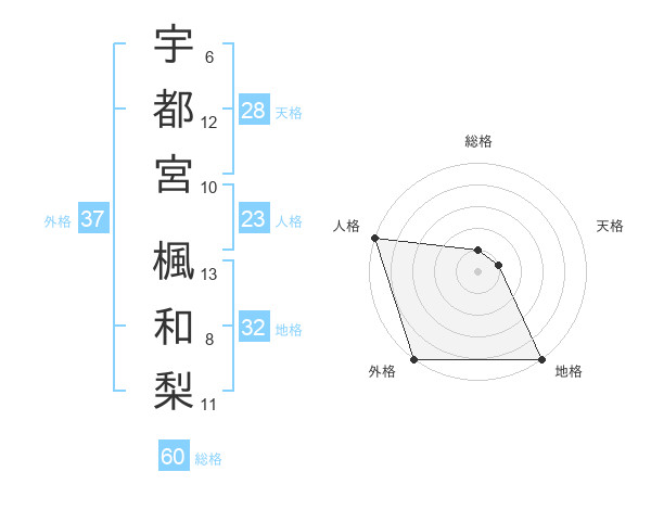 宇都宮 楓和梨さんを姓名の画数から五運を鑑定