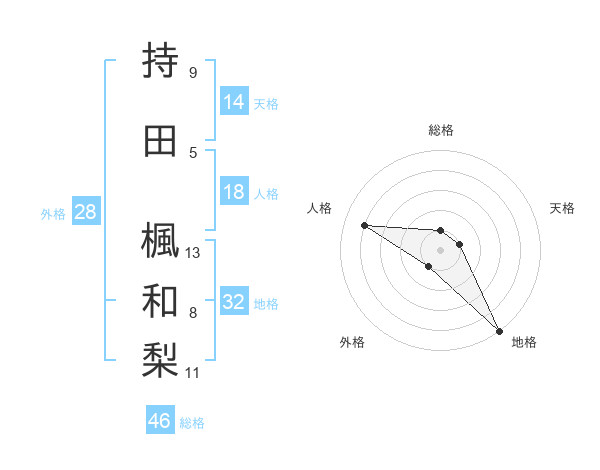 持田 楓和梨さんを姓名の画数から五運を鑑定