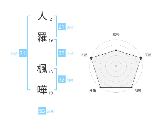 人羅 楓嘩さんの総格は53画の3点!