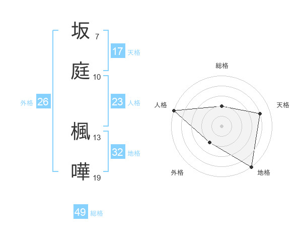 坂庭 楓嘩さんを姓名の画数から五運を鑑定