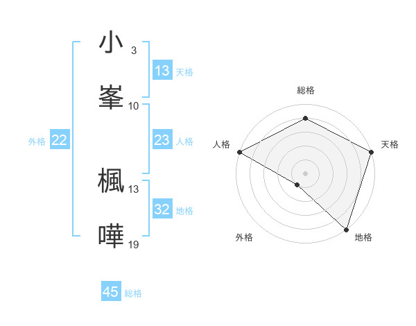 小峯 楓嘩さんを姓名の画数から五運を鑑定