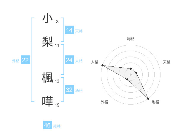 小梨 楓嘩さんの外格は22画の1点!