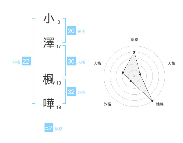 小澤 楓嘩さんの総格は52画の4点!