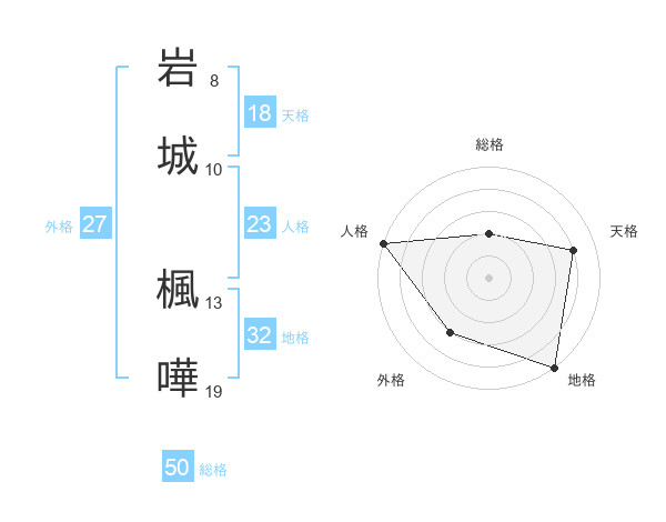岩城 楓嘩さんの総格は50画の2点!
