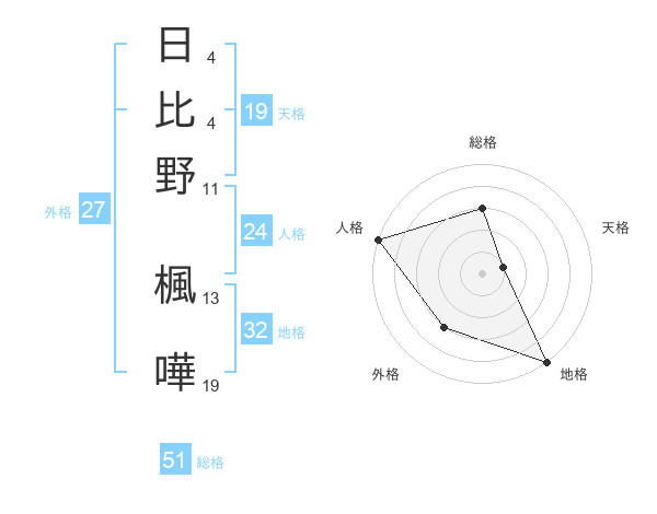 日比野 楓嘩さんを姓名の画数から五運を鑑定