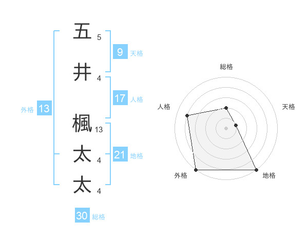 五井 楓太太さんの外格は13画の5点!