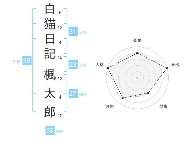 白猫日記 楓太郎さんの総格は58画の4点!