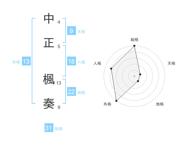 中正 楓奏さんを姓名の画数から五運を鑑定