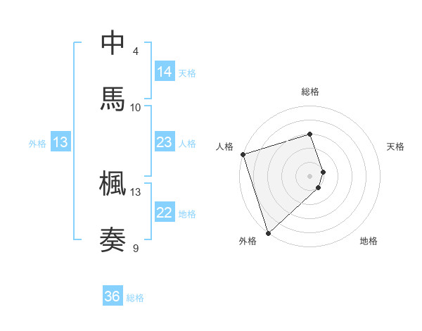 中馬 楓奏さんを姓名の画数から五運を鑑定