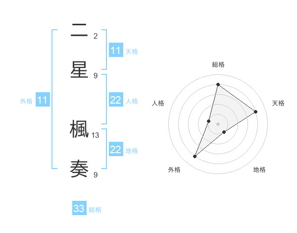 二星 楓奏さんの人格は22画の1点!