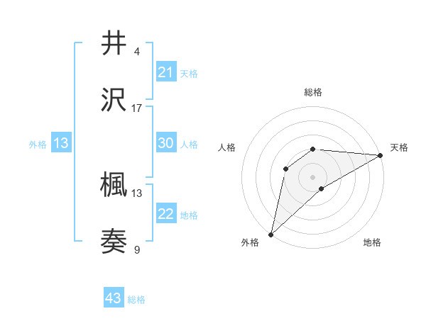 井沢 楓奏さんの総格は43画の2点!
