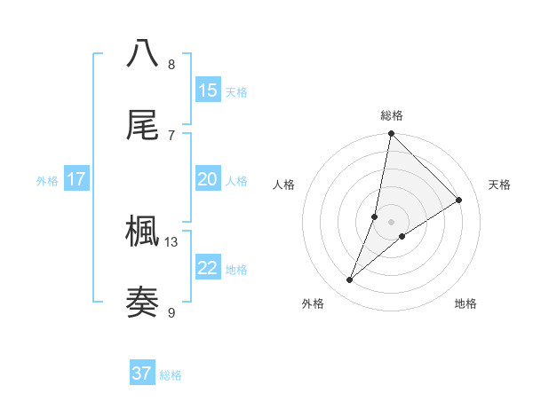 八尾 楓奏さんの総格は37画の5点!