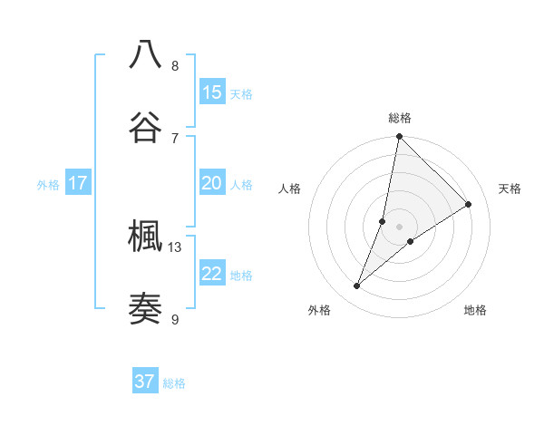 八谷 楓奏さんを姓名の画数から五運を鑑定