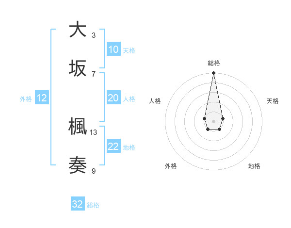 大坂 楓奏さんの総格は32画の5点!