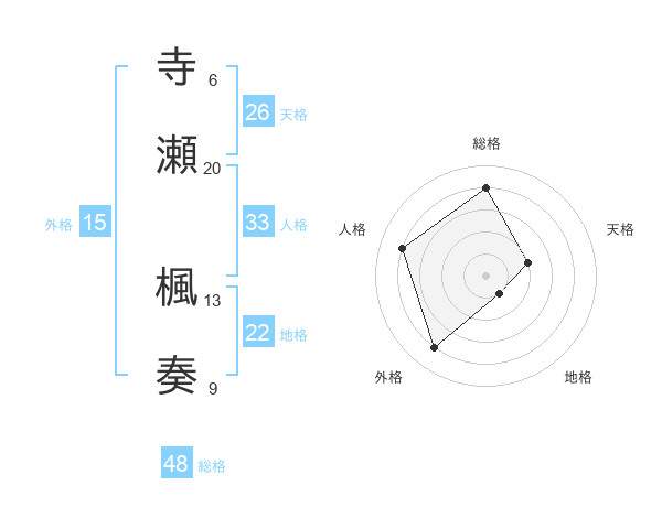 寺瀬 楓奏さんの総格は48画の4点!