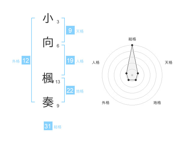 小向 楓奏さんを姓名の画数から五運を鑑定
