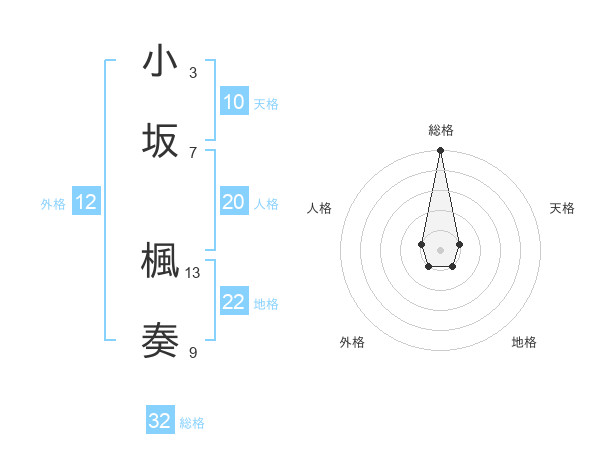 小坂 楓奏さんの総格は32画の5点!