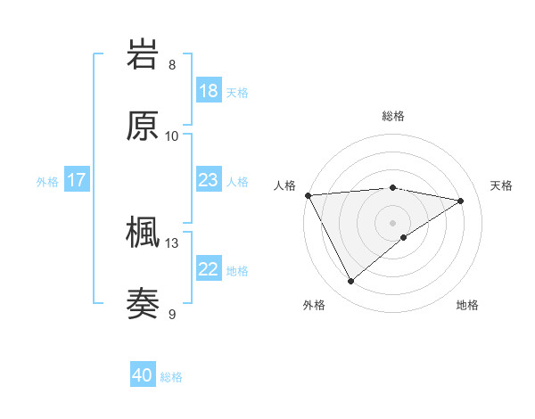 岩原 楓奏さんの総格は40画の2点!