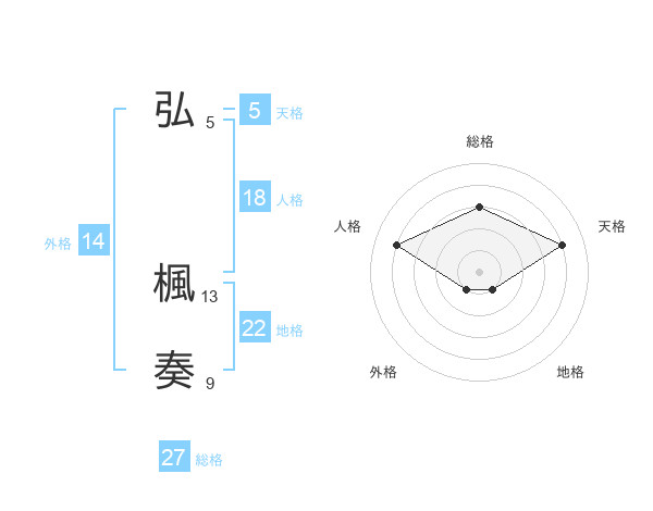 弘 楓奏さんを姓名の画数から五運を鑑定