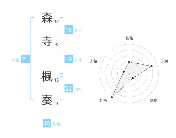 森寺 楓奏さんを姓名の画数から五運を鑑定