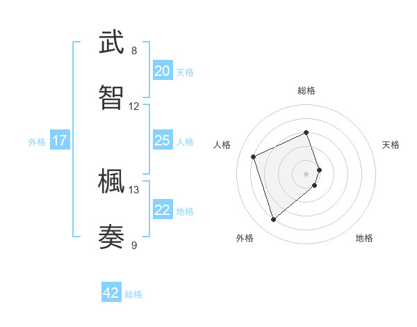 武智 楓奏さんの天格は20画の1点!