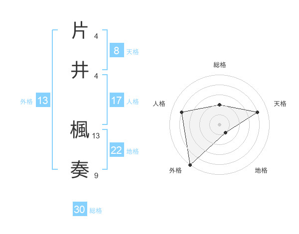片井 楓奏さんの総格は30画の2点!