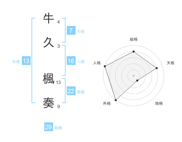 牛久 楓奏さんを姓名の画数から五運を鑑定