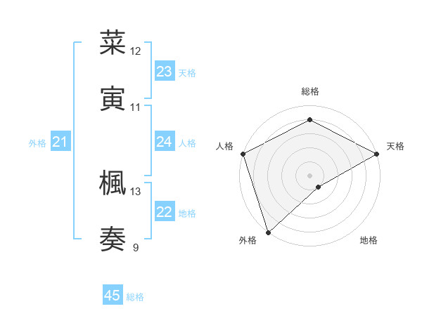 菜寅 楓奏さんの総格は45画の4点!