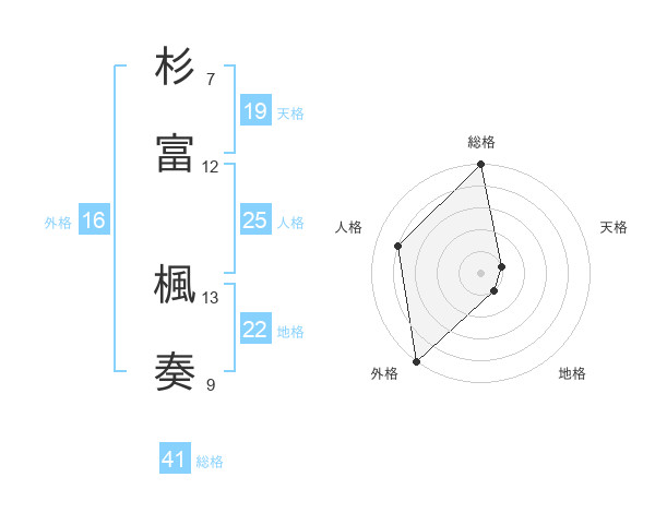 杉富 楓奏さんを姓名の画数から五運を鑑定