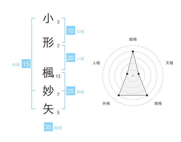 小形 楓妙矢さんを姓名の画数から五運を鑑定