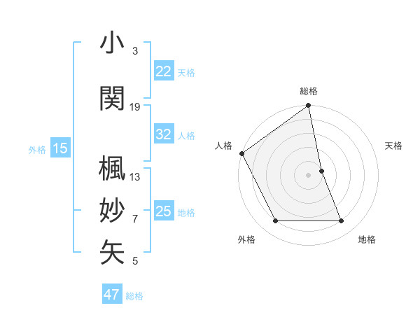 小関 楓妙矢さんを姓名の画数から五運を鑑定